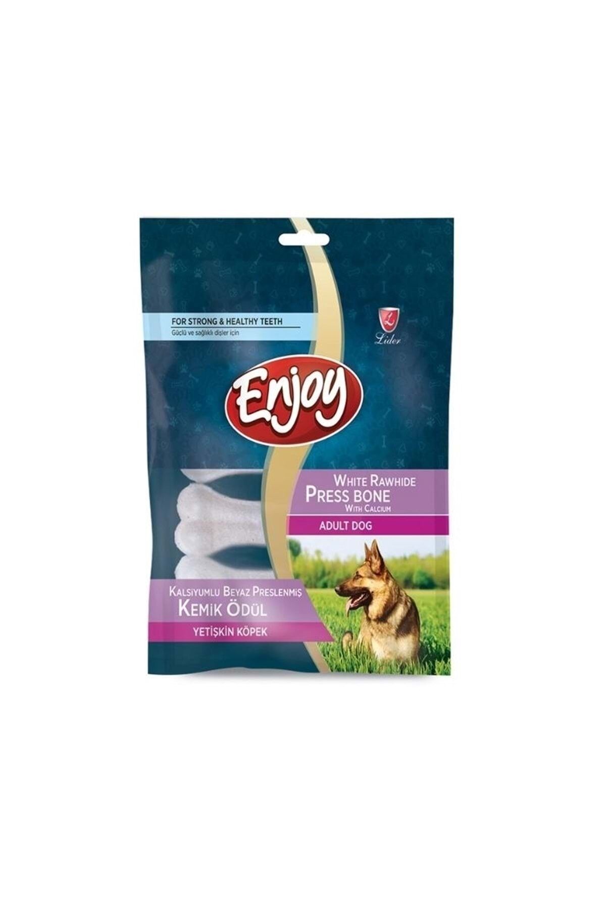 Enjoy Beyaz Pres Kemik 3'lü Köpeğinizin çiğneme ihtiyacını giderir. ; *Doğal diş fırçası görevi yaparak köpeğinizin dişlerindeki plak ve tartar oluşumunun engellenmesine yardımcı olur. ; *Köpeğinizin kötü ağız kokusunun önüne geçilmesinde etkili bir rol oynar.;