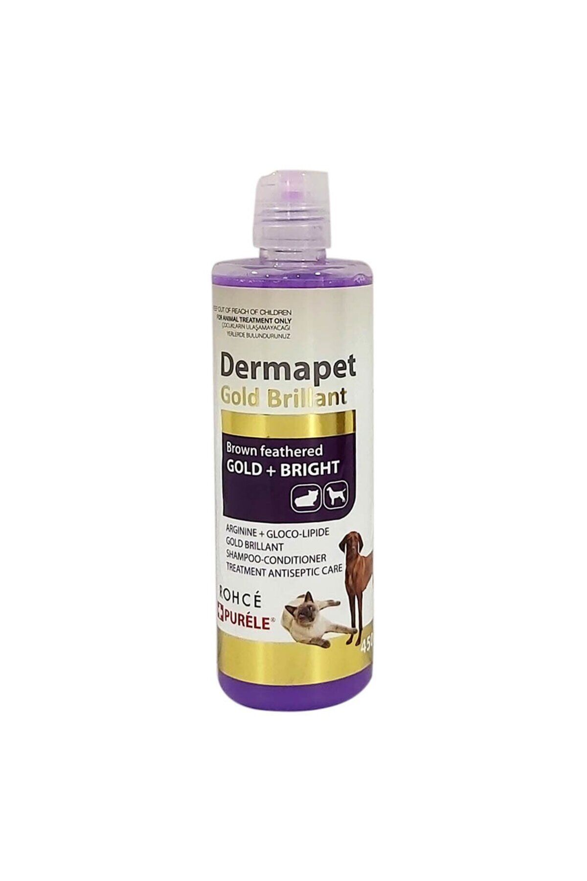 Purele Dermapet Sarı Kahverengi Tüylü Kedi ve Köpek İçin Dermatolojik Etkili Kremli Şampuan Dermapet Gold Medical Şampuan Kullanım Sahası : Purele dermapet gold, kahverengi ve sarı ırk kedi ve köpeklerde yıkama, temizlik, derinin yumuşaklığı ve parlaklığının korunması amaçları ve kremli, giderici, antiseboroik, antiseptik özellikleriyle koku giderici amaçlarda kullanılır.; Kullanım Şekli ve Dozu : Köpek (kedi) ılık su ile ıslatılır.; Avuç içine yeterli şampuan dökülür.; Deri ve tüylere uygulanan şampuan, su ile köpürtülür.; Enseden başlayarak, el ile friksiyon yapılarak deriye ve tüylere şampuanın tamamen nüfus etmesi sağlanır.; 3-5 dakika sonra köpükler durulanır.; Havlu ile köpek kurulanır.; Genel Uyarılar : Ürünü, 6 haftalıktan daha küçük köpek yavrularında lütfen kullanmayınız.; Dermapet şampuanı gözle temas ettirmeyiniz.; Petinizi, 14-21 günden daha sık aralıklarla yıkamayınız.; Ürün, gıda malzemelerinden uzakta, çocukların ulaşamayacağı yerlerde muhafaza edilmelidir.; Uygulama sonrası eller su ile yıkanmalıdır.; Ürün; gözlere, ağıza, kulaklara, burun ve genital bölgelere uygulanmaz.; Saklama Şartları ve Raf Ömrü: Ürün, kendi ambalajı içinde, oda sıcaklığında, direkt güneş ışığından ve nemden uzakta muhafaza edilmelidir.; Raf ömrü, üretim tarihinden itibaren 2 yıldır.